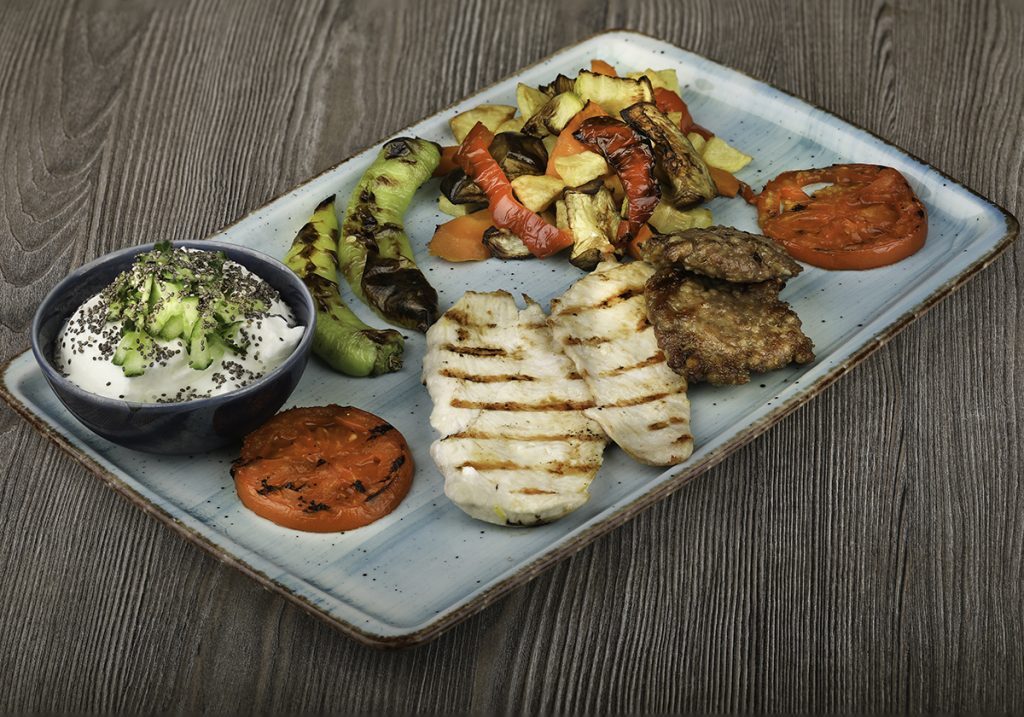 Izgara Köfte, Izgara Tavuk, Izgara Domates, Airfryer ile Hazırlanmış Sebzeler, Chialı Yoğurt